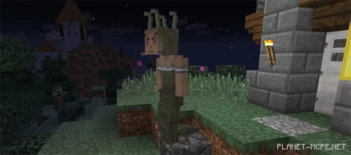Еще один новый моб — медуза (замена Странника Края). Это еще одно мифологическое существо, которое имеет вместо волос ядовитые змеи на голове. В любом случае, не следует смотреть ей в глаза! Медуза гораздо опаснее Странника Края из мира MCPE.