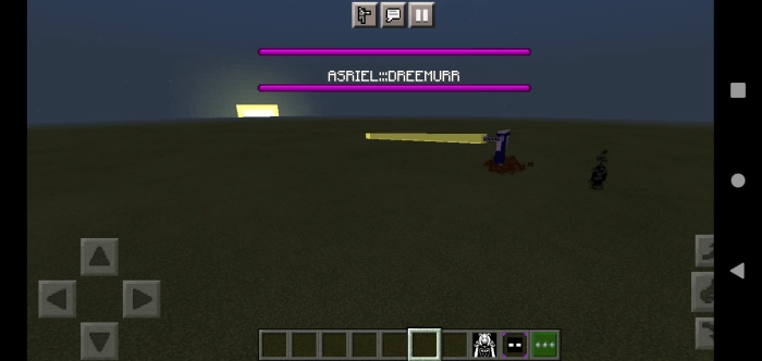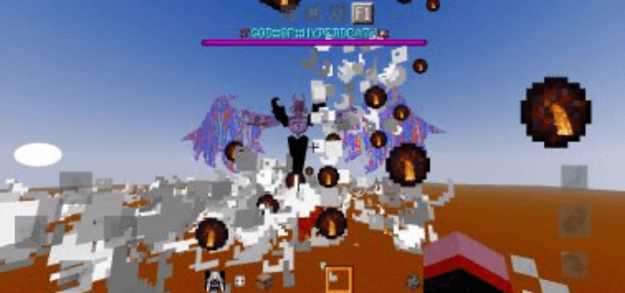 Далее босс начнет спамить в Minecraft PE магию огня. Будьте осторожны – заранее узнать, откуда идет удар достаточно проблематично. Затем в ход идут молнии. Они не наносят серьезный урон, но все же лучше не попадаться.