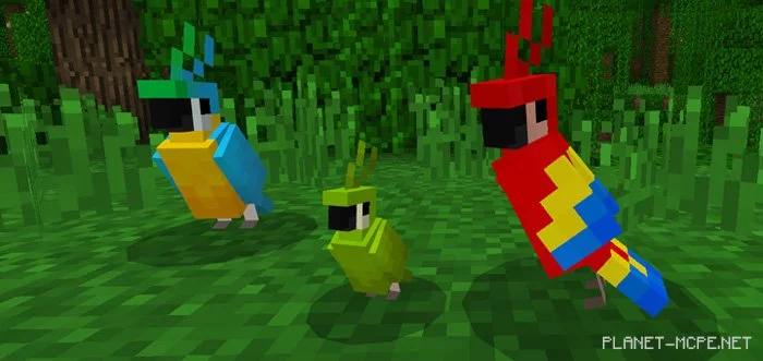Очень трудно перевозить попугаев в свой дом. Но даже при том условии, что у Вас есть два попугая, нет даже никакого способа для их размножения в мире Minecraft Pocket Edition. Мод «Baby Parrots (Попугаи малыши)» устраняет эту проблему, заставляя прирученных попугаев размножаться, и даже добавляет милых маленьких попугаев в игру МКПЕ. Они абсолютно восхитительны!