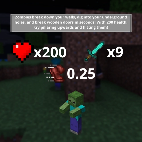 Автор не стал изобретать в Майнкрафте велосипед, и просто усилил монстров в моде Безумный ИИ (Super Insane A.I.). Причем сделал это, действительно до безумия. Вот как выглядят их «тактико-технические характеристики» в MCBE – скорость перемещения, наносимый урон, и количество ХП.