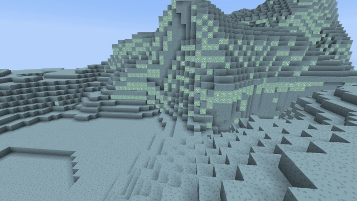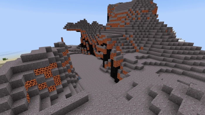 Вулканический биом. Этот биом заполнен новыми блоками — золой. Также там есть лава и уголь.