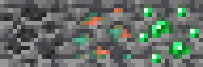 Блоки руды (декоративная функция). Мало ли, вдруг вы что-нибудь захотите построить. Для добычи блока угля может использоваться кирка из дерева, а для изумрудного и медного – начиная от каменной, и выше.