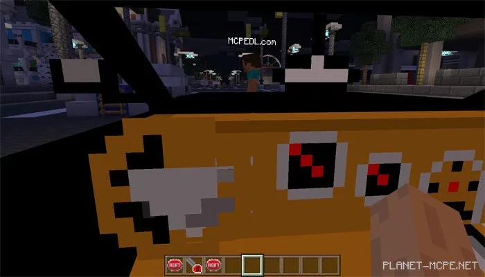 Вам нужен ключ (морковь на палочке), чтобы управлять автомобилем. Просто посадите себя внутри автомобиля (ищите тени автомобиля), а затем держите ключ, чтобы начать движение в Майнкрафт ПЕ.