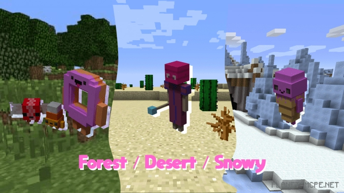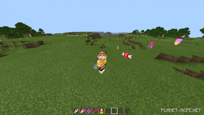 Превратите свой мир Minecraft в сладкое королевство, скачав мод «Candy Invasion (Вторжение конфет)»! У Вас появится пять милых мобов: конфета, пончик, шоколадный батончик, леденец на палочке и мороженое. Каждое новое существо закреплено за определенным биомом. Например, пончик с конфетами живут в лесу, карамель — в пустыне, а мороженое — в снежных биомах .