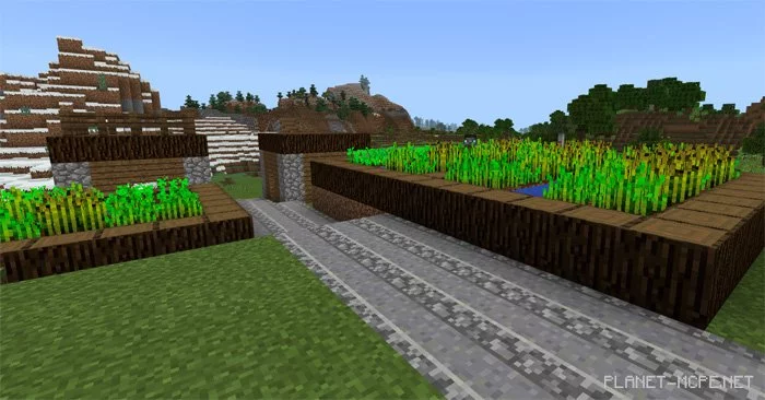 Вот один из примеров использования новых блоков Stone Pathway. Имейте в виду, что ни один из этих новых блоков не заменит уже существующих. Это означает, что Вы можете комбинировать ваниль с новыми блоками Майнкрафт Покет Эдишн, добавленными модом.![]()