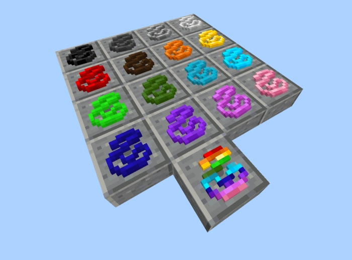 Шелковые блоки имеют тот же цвет, что и паук, из дропа которого они были изготовлены. Блоки имеют плетеный узор.