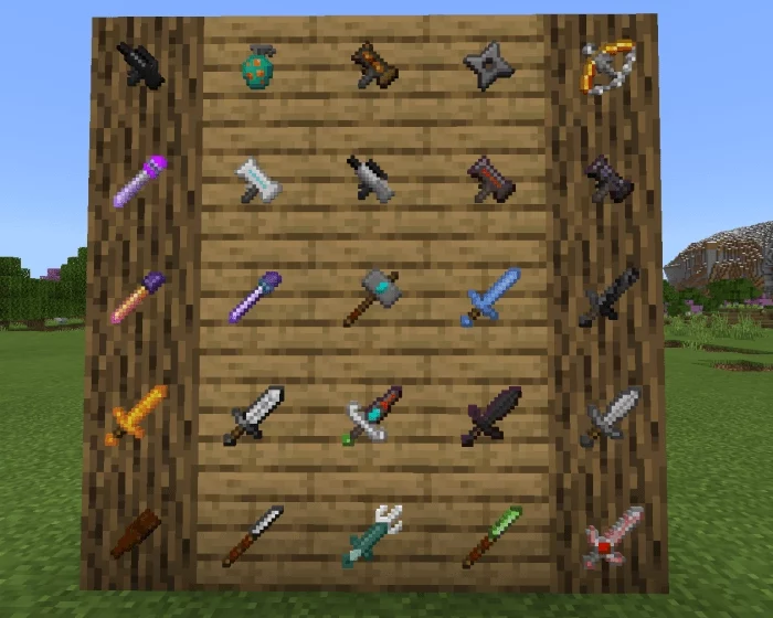 У каждого оружия мода Сумасшедшее оружие (Crazy Weapons) есть свои уникальные эффекты в Minecraft BE. Вы сможете создать его на верстаке в режиме выживания, или же добавить через творческий инвентарь. Вот что присутствует в моде для MCPE:
