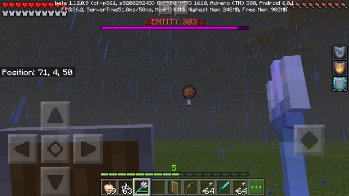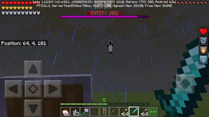 Днем происходиn мало жутких событий, самое интересное начинается ночью. Сущность может сказать Вам несколько фраз, например: «Загадай желание». Иногда эти сущности будут создавать случайные структуры или перевернутые кресты. Они могут расставить динамиты и взорвать их разом. Если Вы приблизитесь к нему, то, подобно еще одному мифическому существу Minecraft — Хиробрину, сущность 303 сразу исчезнет, возможно, оставив позади Вас динамит.
