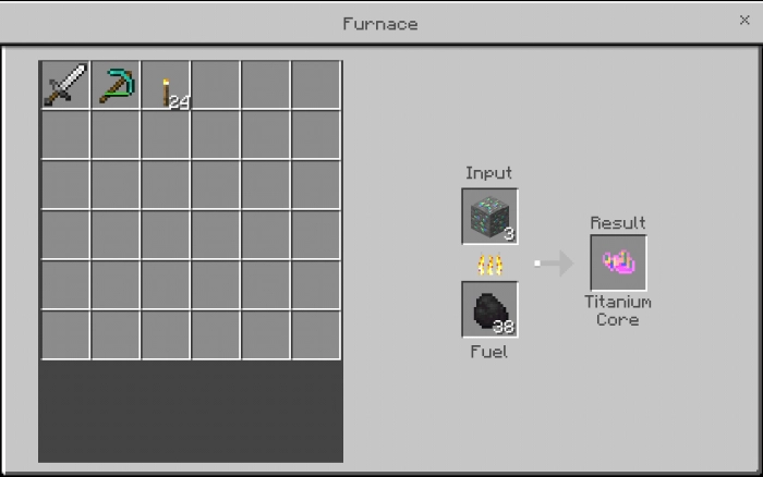 Для изготовления титанового меча необходимо объединить стержни и ядра.