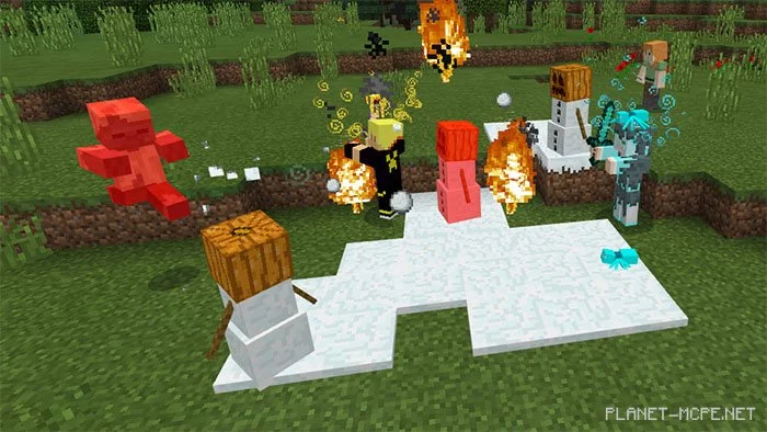 Мод «Elemental Friends (Элементальные друзья)» основан на моде Ender Archer Friend. Среди новых мобов есть — Ледяная Девочка, Пламенный Мальчик и Ледяной Паук. Каждый из этих новых мобов обладает собственным набором уникальных возможностей и функций в Minecraft PE, а также может быть приручен Вами для использования в качестве Вашего преданного защитника. Они, без сомнений, будут очень полезны, если Вам нравятся затяжные путешествия и приключения в МКПЕ, но для этого Вам требуется дополнительная защита и поддержка.
