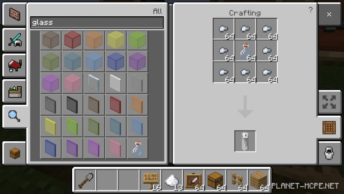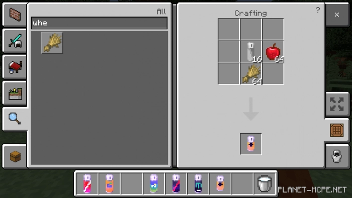 Рецепт крафта банки. Предмет, который можно создать всего один раз. Вы можете использовать одну и ту же банку для всех напитков. Поместите в решетку крафта обычную бутылку, а вокруг нее разместите 8 железных самородков.