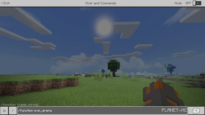 «/function pvp_arena» — создает арену, на которой могут сражаться все игроки. Вас автоматически обеспечивают всеми необходимыми орудиями.