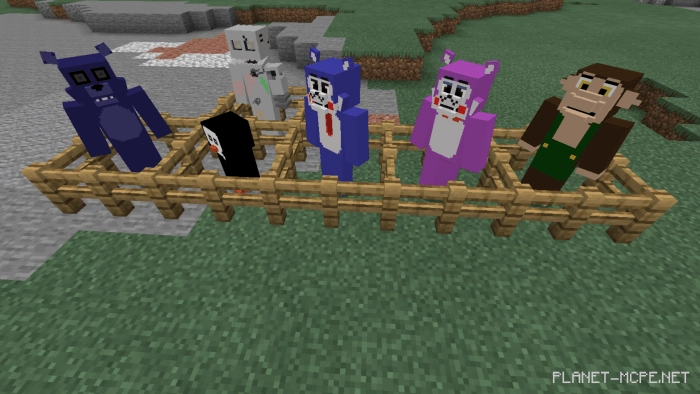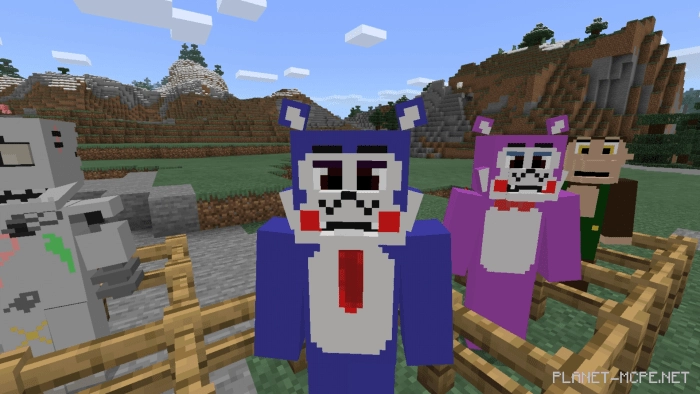 Мод «FNAC MCBE (Пять ночей у Кенди)» добавляет персонажей из популярной игры «Five Nights at Candy‘s (Пять ночей у Кенди)» в Minecraft Bedrock. Они издают звуки, когда их убивают. Также новые персонажи являются враждебными, поэтому позаботьтесь о себе и о жителях свой деревни.