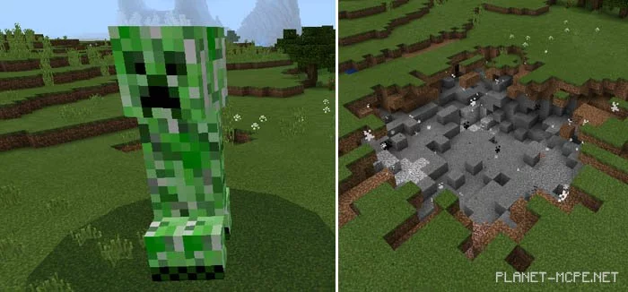 Не играйте с криперами. Их взрыв был увеличен в разы, чтобы они наносили еще большие разрушения миру Minecraft Pocket Edition.