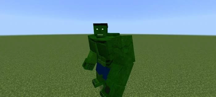 Халк (Addon Hulk) из одноименной модификации не является положительным персонажем. Наоборот, в Майнкрафт на Андроид он несет прямую угрозу как игроку, так и его постройкам из блоков.