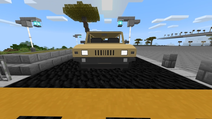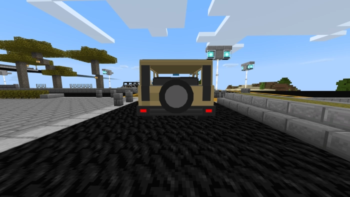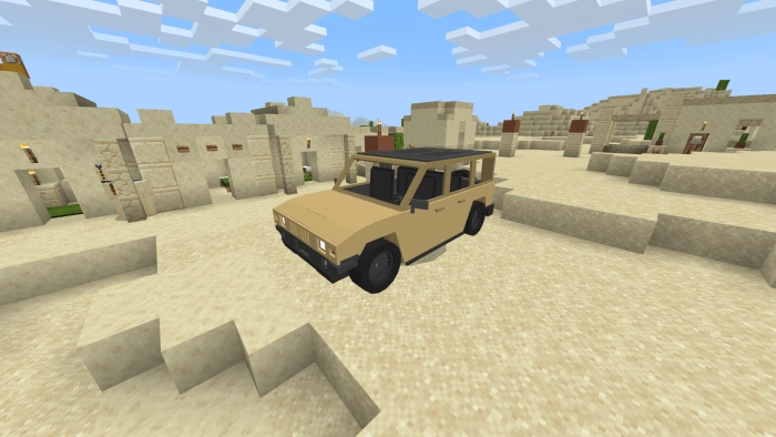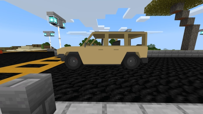 В Minecraft Хаммер имеет 5 мест, инвентарь, большой запас здоровья, анимацию и пользовательские звуки. Доступно 4 цветовых варианта, каждый из которых относится к определенной тематике.