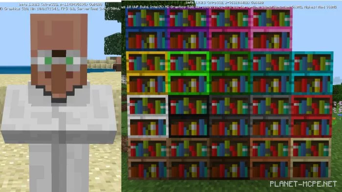 Последний Деревенский житель — это Хранитель Книг, который будет торговать с Вами зачарованными книгами, обычными книгами и окрашенными книжными полками. Дайте ему любой краситель и книжную полку, чтобы получить соответствующую книжную полку. Он даже торгует книжными полками из акации, тёмного дуба, берёзы и ели!