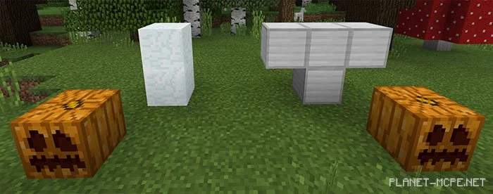 Поскольку они заменяют големов, Вы можете создать каждый из тотемов, построив определённую структуру в Minecraft Pocket Edition. (Поместите вырезанную тыкву поверх каждой структуры, изображённых ниже.)