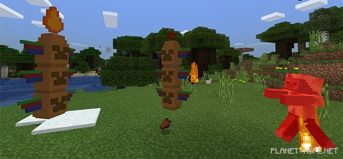Два новых существа — тотема, заменяют в MCPE Железного Голема (Тотем Огня) и Снежный Голем (Исцеляющий Тотем).