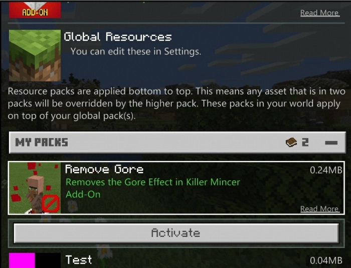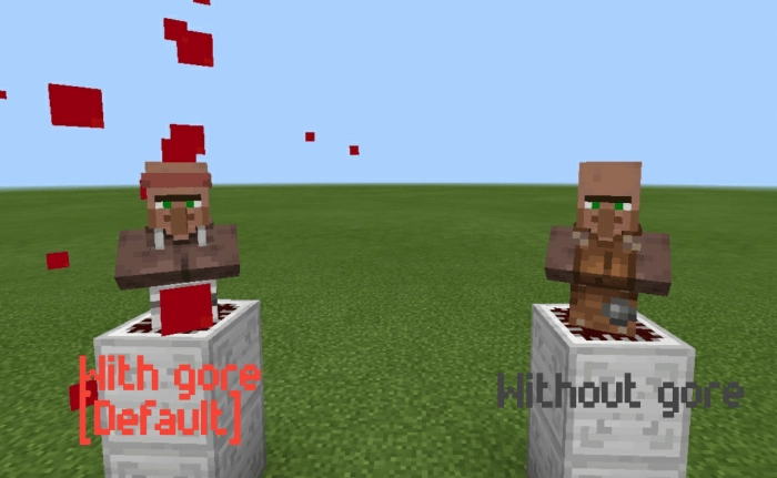 Если Вы не хотите видеть оставшуюся от мобов кровь, Вы можете зайти в настройки ресурспака в Minecraft и отключить этот пакет.