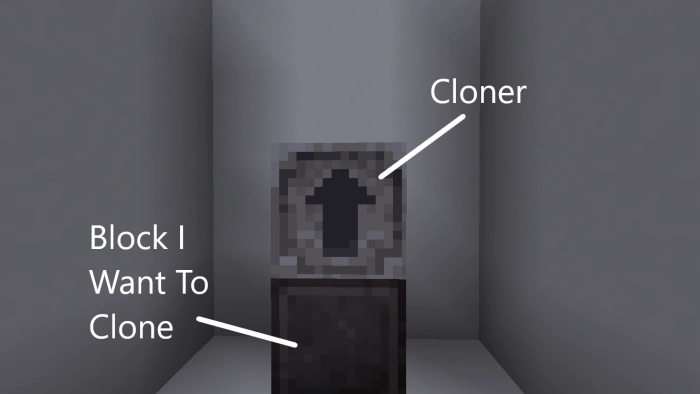Теперь ставьте блок, который хотите получить в MCBE вниз, а на него «клонер».