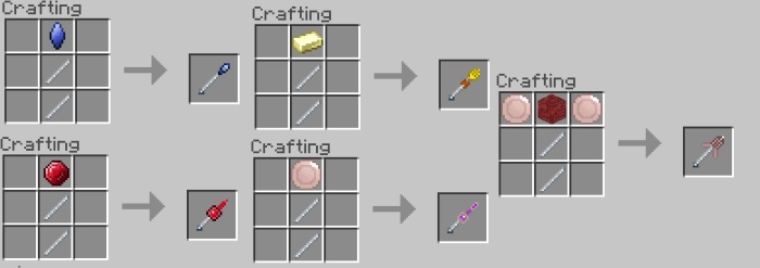 Кстати, оружие! Мод добавляет в Minecraft Bedrock Edition несколько видов посохов: