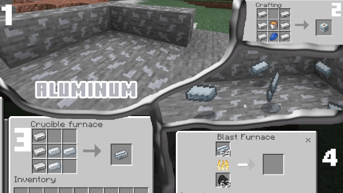 Мод добавляет новый для игры сплав – алюминий. Он понадобится вам для большинства крафтов.