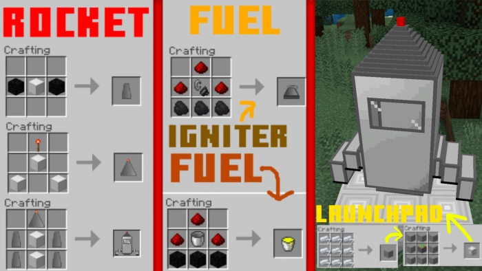Конечно же, нам с вами потребуется каноничный транспорт – ракета. Для перемещения будет расходоваться топливо. На данный момент в MCPE реализовано два вида.