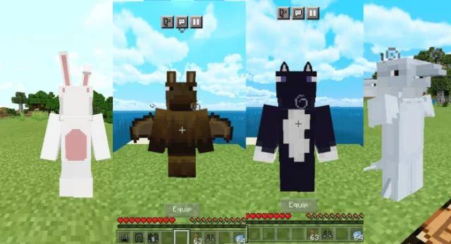 К сожалению, мод не даст вам возможность превратиться в какое-нибудь животное в Minecraft BE, а вот одежду добавит. Используя модификацию Костюмы в виде мобов (Expandble Costumes) вы получите костюмы:
