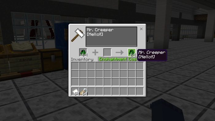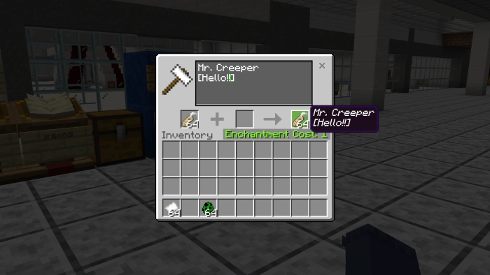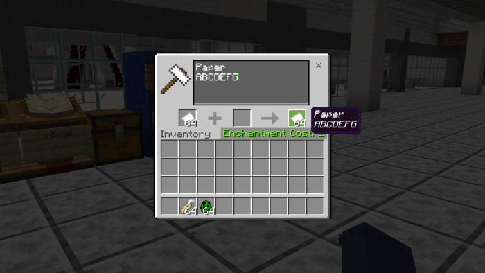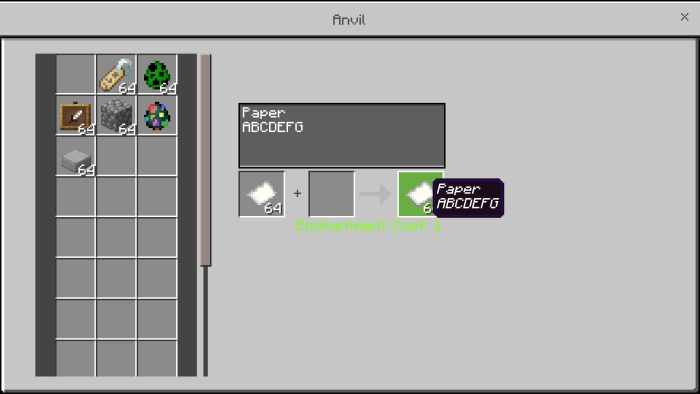 Для того, чтобы мод работал, перейдите в настройки (глобальные!) Minecraft PE, и активируйте его. Важный момент: если будете совмещать с другими модами или крупными картами, обязательно переместите Кузница редактирования предметов (An Anvil That Can Name Items In New Lines) вверх. А теперь берем любой из предметов в Minecraft Bedrock Edition, подходим к кузнечному столу, и в появившемся окне вводим надпись, как в случае с этой бумагой.
