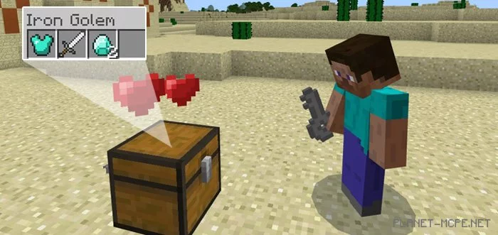 Запираемые сундуки заменяют железных големов в Майнкрафт ПЕ. Это означает, что Вы можете найти их в деревне или в 21 доме. Вы также можете использовать яйцо спавна Железного Голема, чтобы создать запираемый сундук.