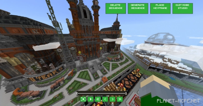 Мод «MCBE Studio (Студия MCBE)» для Minecraft Bedrock версии 1.12 позволяет использовать временные интервалы в версии игры. API мода несложен, его нельзя сравнить с более серьезными дополнениями, но с его помощью Вы можете размещать ключевые кадры в мире, которые интерполируются для создания последовательности.