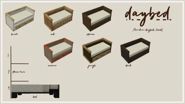Как и большинство модов, Мебель Marcraft (Marcraft BE) добавляет новые предметы для интерьера в Майнкрафт Бедрок Эдишн. Практически все из них представлены в шести вариантах досок.