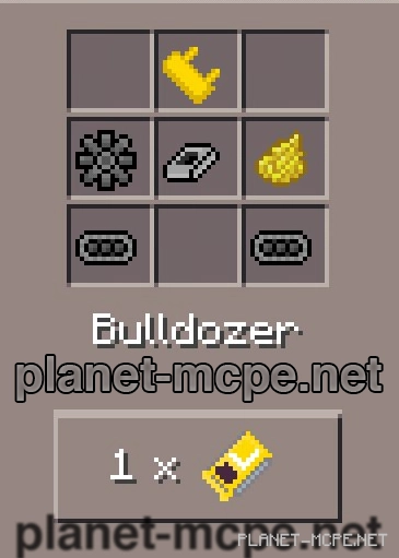 Бульдозер в основному используется в строительных целях. Бульдозер оборудован специальным ковшом, который используется для очистки земли он ненужных блоком земле. Когда вы будете ехать на бульдозере — на вашем пути будут уничтожатся все блоки!