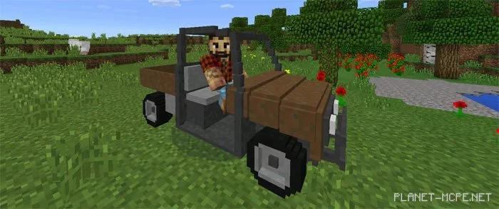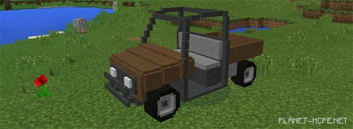 Небольшой комфортный автомобиль на котором вы сможете с ветерком прокатится по миру Minecraft Pocket Edition. Данный автомобиль позволит вам трое быстрее перемещаться ми миру!