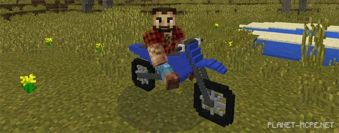 Мод Mech — данная модификация позволяет создавать в мире Minecraft Pocket Edition различные транспортные средства передвижения по миру MCPE. Mech мод добавляет в MCPE возможность создать себе небольшой двухколёсный велосипед, на котором вы сможете путешествовать по миру. Или же сделайте себе одноколёсный моноцикл (велосипед) и так же с ветерком передвигайтесь по миру — наслаждаясь окружающей средой.