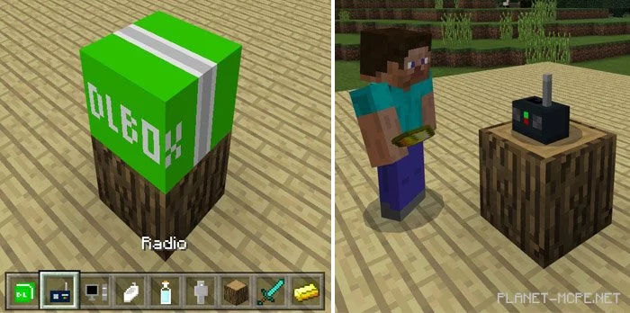 Радио (является заменой красного шалкера) — примените на радио золотой слиток, чтобы началось воспроизведение музыки