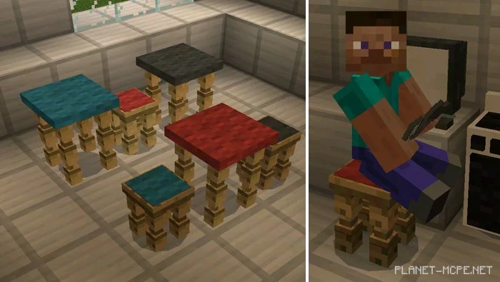 Столы / Стулья — костяная мука, светло-голубая краска, красная краска, лазурит, розовая краска, какао-бобы: Украсьте свой дом красивой мебелью. Вы даже можете сидеть на стульях.