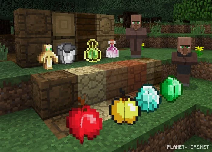Торговля с ними очень похожа на торговлю с любыми другими деревенскими жителями. Деревенские жителя хотят чего-то в обмен на свои красиво вырезанные деревянные блоки.