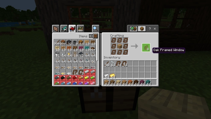 Все окна доступны в Minecraft как в режиме выживания, так и в творчестве. Вы можете использовать команду «/give», а также «/function windowsplus», которая даст Вам сразу все окна.