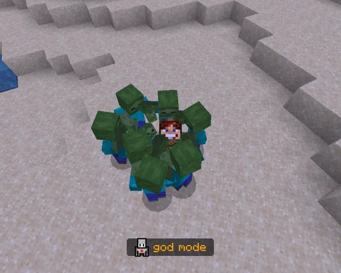 Модификация под названием Настоящий режим бога (Real God Mode) работает в Minecraft как в одиночной игре, так и в мультиплеере. После активации мода в MCBE персонаж станет практически неуязвимым для получения урона.