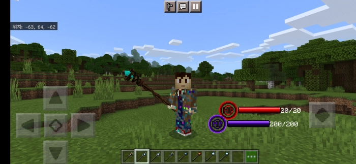Первое, что бросится вам в Майнкрафт на телефон в глаза, это измененный интерфейс. И не просто измененный – в игре появилась полоска магической энергии и шкала здоровья. Естественно, они созданы автором модификации Немножко магии (Watts’s RPG UI + Some Magic Items) не просто так.