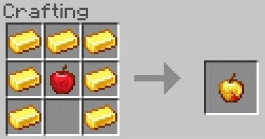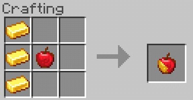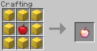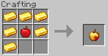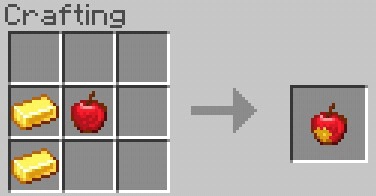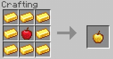 Крафт вполне стандартный, но, только с одной оговоркой. Чтобы было честно, автор сделал привязку эффектов пищи к количеству золота, которое используется в Minecraft PE при создании яблока. Чем больше золота – тем больше эффект.