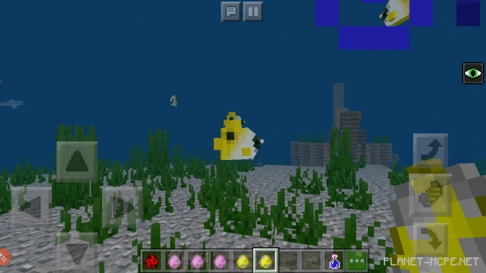 Мирные мобы (рыба-бабочка, рыба-ангел, кит и креветка, морская звезда): Используются для украшения океанов и аквариумов в Minecraft Bedrock.