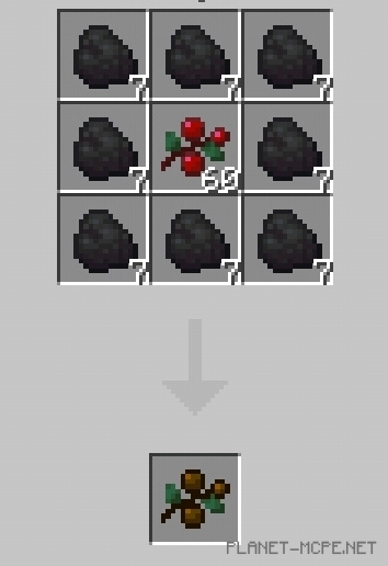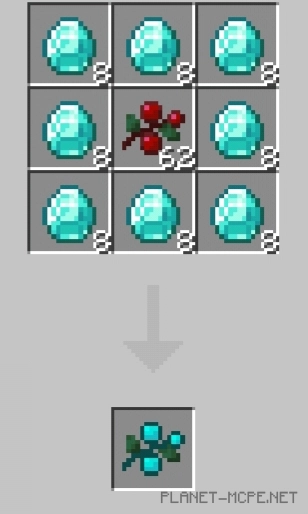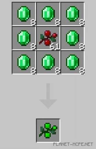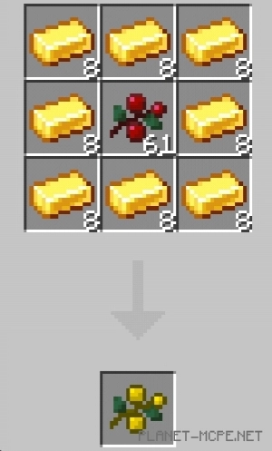 Рецепт различных видов ягод работает как крафт золотых яблок: одно яблоко в центре и восемь руд вокруг него. В этом случае также — не блок, а именно руда.