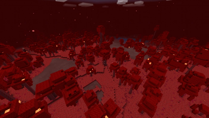 Багровый лес. Здесь обитают зомбированные пиглины и зоглины.