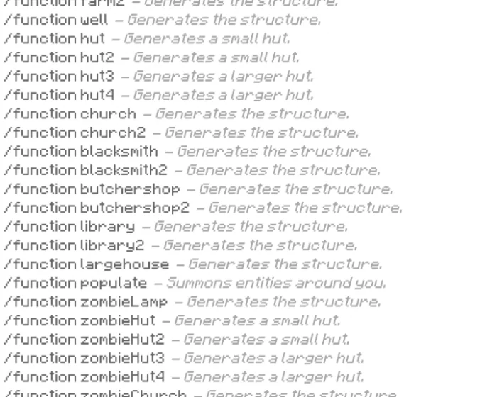 Пакет функций «Village Generator (Генератор Деревни)» добавляет в Minecraft Bedrock новые функции, которые Вы можете выполнить в игре с помощью определённых команд. Так, используя одну из команд, Вы сможете создать даже целую деревню, но если вам это все не интересно, то вы можете найти другие игры и приложения на андроид!