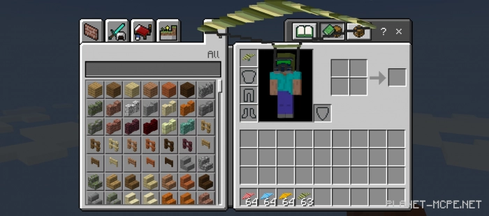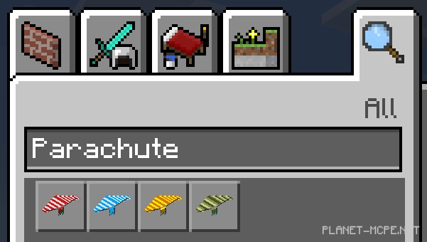 Это очень просто! Переключитесь в творческий режим Майнкрафт Бедрок, затем найдите «парашют» в инвентаре и всё! 4 новых парашюта ждут Вас.
