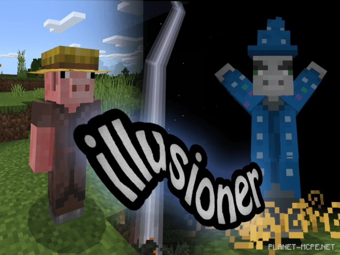 В семействе Иллагеров появится новый моб — иллюзионист. Ранее он был только в версии java, но с этим модом Вы можете добавить его и в другие версии.