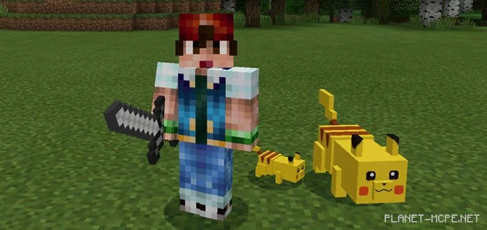 Если Вам нравятся Покемоны, то мод «Pikachu and Raichu (Пикачу и райчу)» будет идеальным для Вас, поскольку он добавляет Пикачу и Райчу в мир Minecraft Pocket Edition. Поймайте (или, скорее, приручите) Пикачу и сохраните его как своего верного компаньона. Вы можете даже сделать из него Райчу, дав ему изумруд. Пусть он сразится за Вас и нанесёт мощные удары молнии Вашим врагам в Minecraft PE.